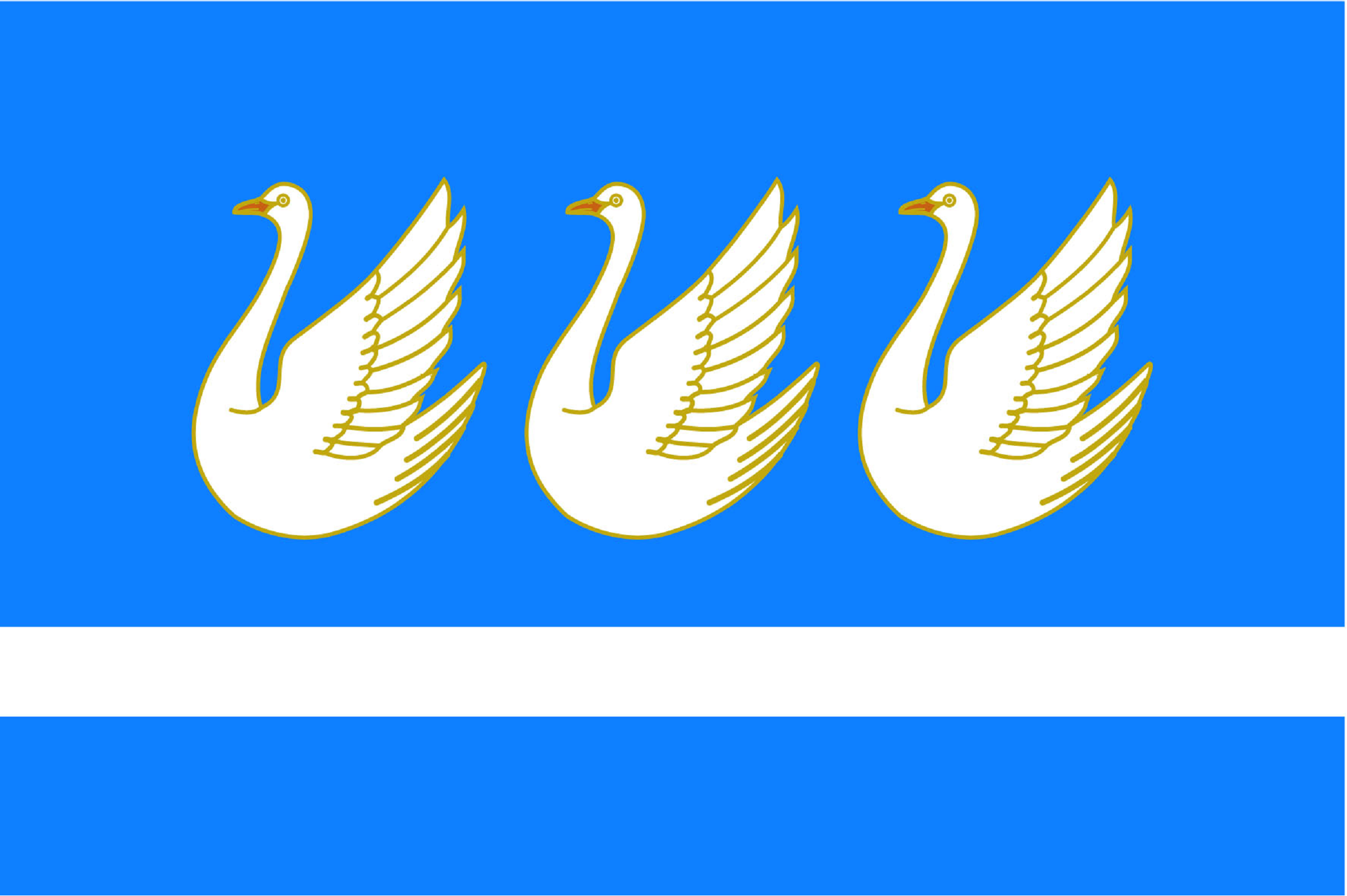 Прямоугольное полотнище с соотношением ширины к длине 2:3, состоящее из трех горизонтальных полос: верхней синего цвета шириной 7/10 ширины полотнища, средней белого цвета шириной 1/10 ширины полотнища и нижней синего цвета; в центре верхней синей полосы три плывущих к древку гуся белого цвета с клювом красного цвета. ________________________________________________________ Внесен в Государственный регистр символики в Республике Башкортостан с присвоением регистрационного номера 068. Внесен в Государственный геральдический регистр Российской Федерации с присвоением регистрационного номера 3242.